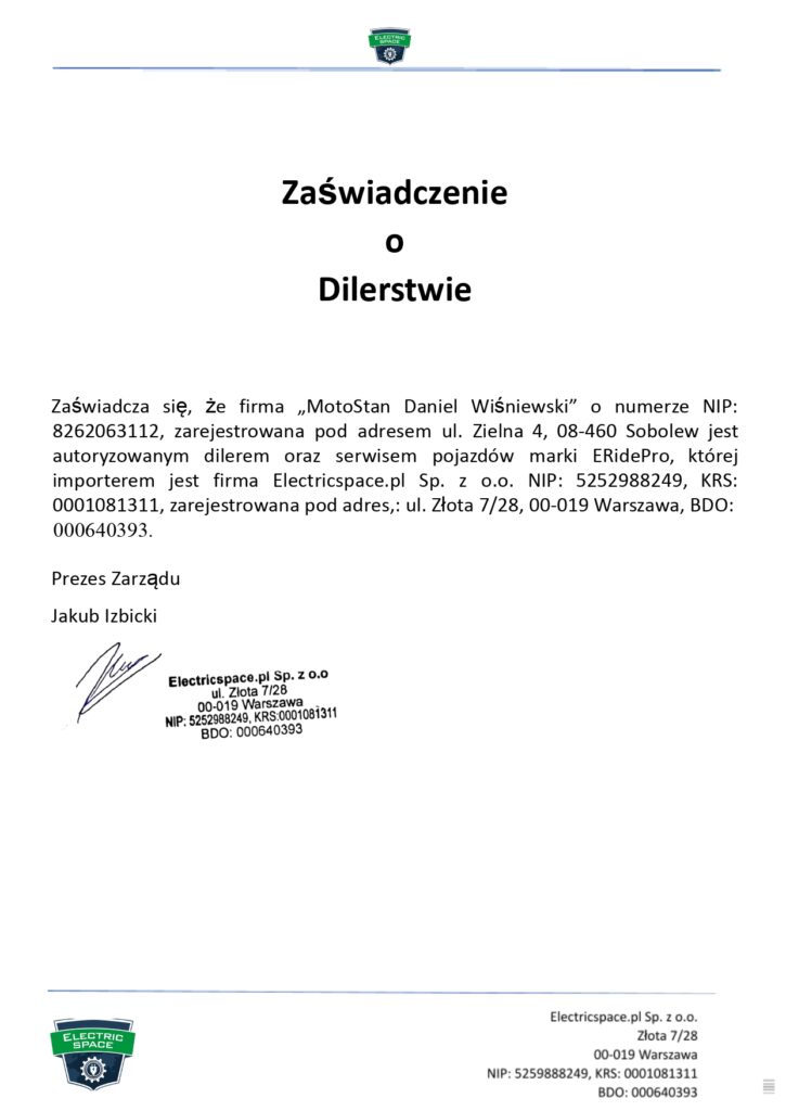 Współpracujemy bezpośrednio z oficjalnym importerem, firmą Electricspace, dzięki czemu możemy zaoferować Wam pełną gamę pojazdów e-ride w najlepszych konfiguracjach i z gwarancją pełnego wsparcia.